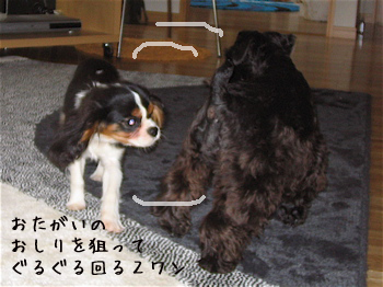 即効2ワンとご挨拶をすませ、ひろ~いリビングを走り回る走り回る(汗)。