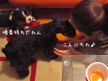 友達(彼女が飼い主ではありません)とごあいさつの順番待ちしたり