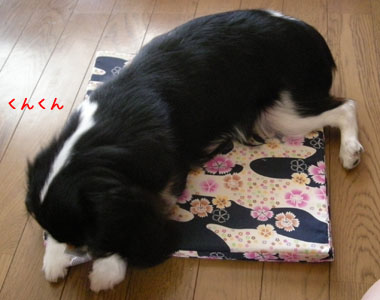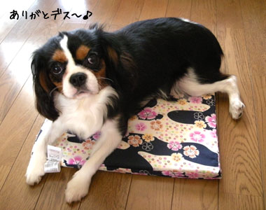 お、黒犬福が乗ると、下の和風柄がはえて、ちょっとイイトコの犬風になりまちた。