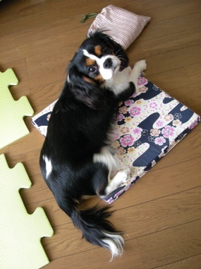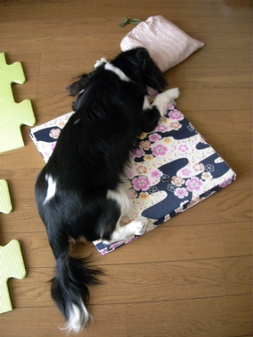 だるだる~ 日常 2021.03.01 2008.06.21 座布団にのっかって、アイスノンが入った冷たい巾着をガジガジする福。 カメラを向けると振り向きました。 でも、特にかまってもらえないんだと分かると、また巾着の紐をガジガジしはじめました。マイペースだな~。 でも助かる。