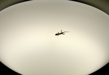 関係ないけど、先週末、帰ってきたらヤモリくんが照明器具にへばりついてました。