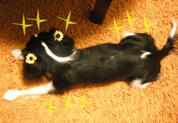 とってもかわいいひまわりのリボンをつけてもらった福が登場~~!