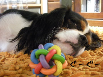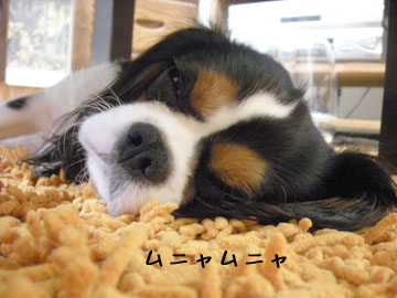 帰ってからごはんを食べた福は、いつものように机の下で眠り始めました。