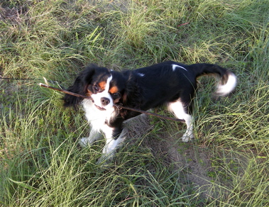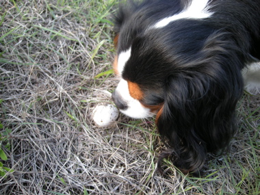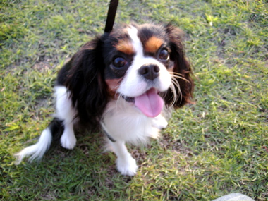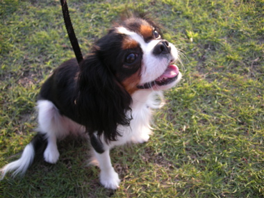 たまに練習している、「お外で長時間おすわり&マテ」。