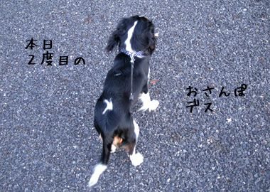 飼い主の疑惑に全く気がつかない福の後姿。