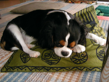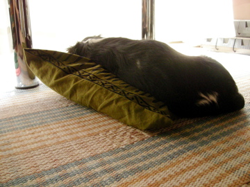 最近買ったクッション。と言っても人間用に買ったのだけど、使うのはもっぱらフクタロウ。