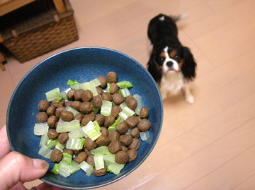 今日は福の大好きな白菜をゆでたのを混ぜました。