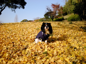 散歩開始からとても足取り軽かった福。何もいわずとも自然と駆け足になり、風に飛ばされる落ち葉を積極的に追いかけてました。
