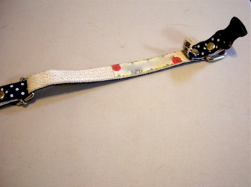 手作り鑑札入れに入れて、狂犬病注射証と一緒にゴムでくくりつけてみました。