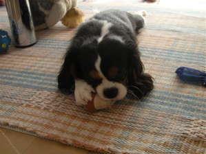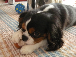 福は留守番から帰ってくると、お出迎えする時になにかひとつおもちゃをくわえてよじ上ってくるのですが、くわえるおもちゃは圧倒的にコレが多い。