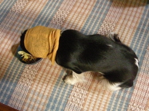 ドッグフード以外に何か入れると、福はさらに喜んでクルクル回ります。