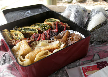 外で食べるお弁当はおいしさがアップしますね。
