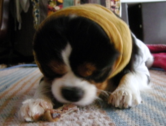 その後、ホネをずううううっっとしゃぶり続け、柔らかくなったところで(なるんだろうね、唾液で)ボリボリと砕き始めます。