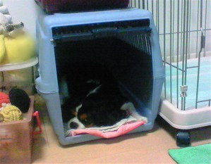 夜、私達の布団のそばにこのクレートを置いておくようにしたら、