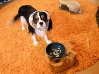いつものおかえりプリプリ踊り(※シッポをふりすぎてオシリも揺れている状態)をしながら、聞いたことのない声で「クーン、クーン」と鳴いていました。