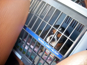 こまめに休憩していたけれど、基本的にはずっとクレートの中で揺られていた福。