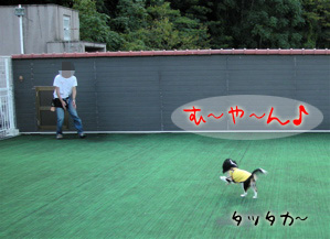思い切り走り回り、私たちの間を楽しそうに行ったり来たりしていました。