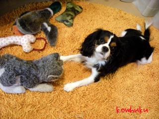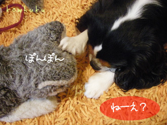 フクはぷーさんが帰ってくると、うれしすぎてシッポふりすぎて、