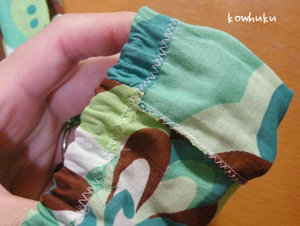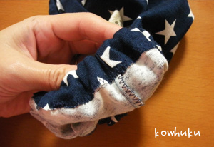 ゴムは、帽子に使われるゴムヒモを使用しましたので、