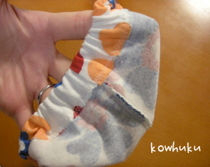 ゴムは、帽子に使われるゴムヒモを使用しましたので、