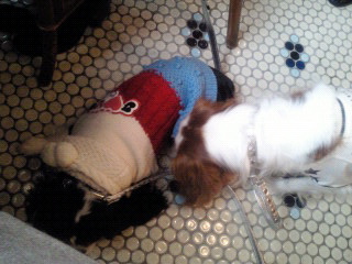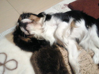 イヌは同じ犬種のキャバリア(しかも兄妹)。