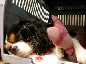 今日はめずらしく、自作のおもちゃを抱えて寝てくれてたので、