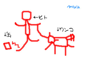 向こう側にあるおやつをワンが食べて戻ってくるゲームです。