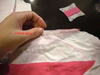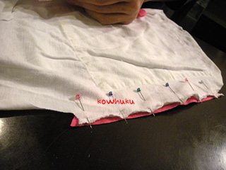 マチ針で留めて、手縫いでぬいぬい。(講座は、手縫いで進んでいきます。)
