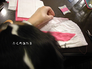 そうしたら、先生が、ピンクの布を継ぎ足す提案をくれました。