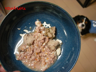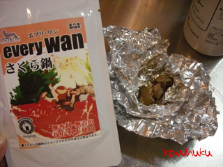 そんななか、フードと一緒に買った、エブリ・ワンのさくら鍋(レトルト)を食べさせてみました。