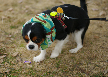 出がけに服を着せようとすると、えらく逃げ回る福。(泣)