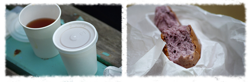 お昼を食べていなかったので、クッチョロカーでベーグルと飲み物を購入し、