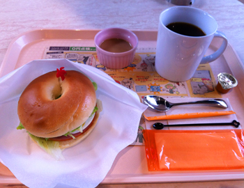 ベーコンのベーグルサンドと珈琲のセットを注文。