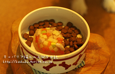 かたまりを崩して、フードと混ぜました